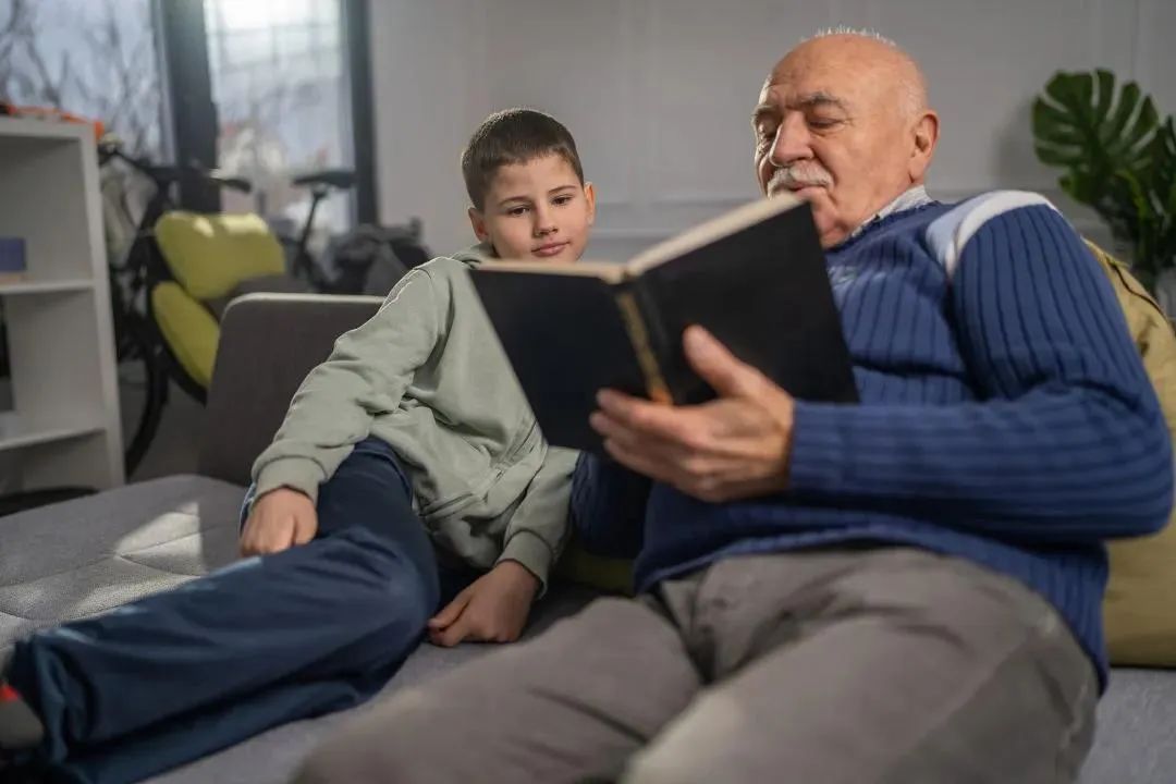 ▲爷爷和孙子在一起阅读,共享快乐时光 图/视觉中国